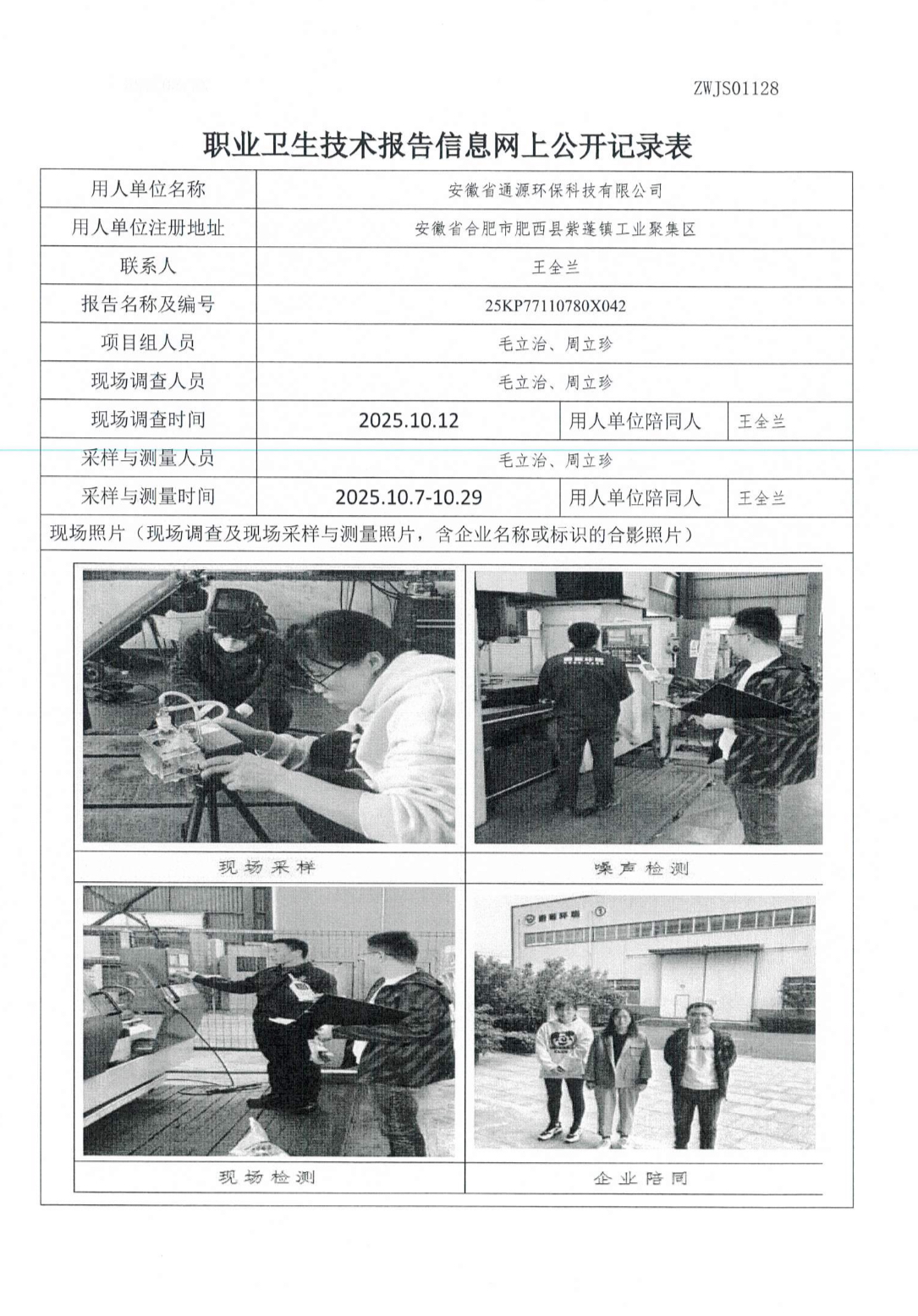 安徽省通源環(huán)保科技股份有限公司職業(yè)病危害控制效果評價(jià)報(bào)告