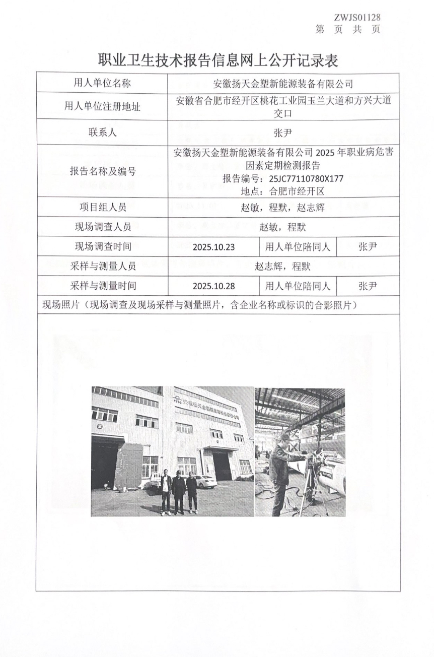 安徽揚天金塑新能源裝備有限公司2025年職業(yè)病危害因素定期檢測報告
